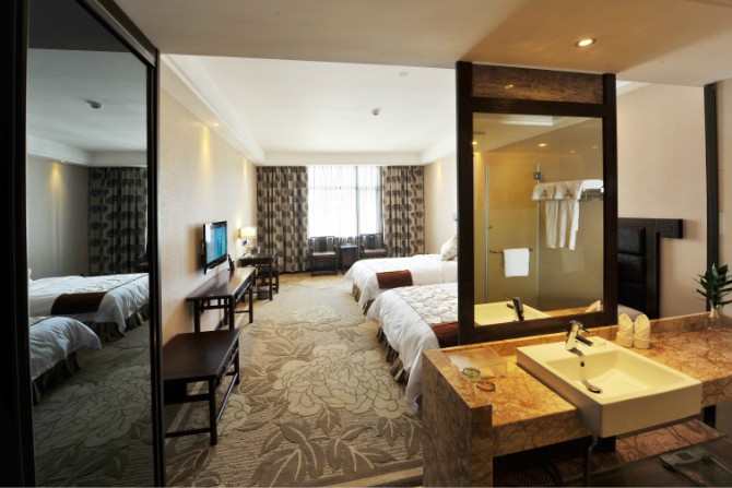 房?jī)?nèi)設(shè)施齊全,使用中央空調(diào),37寸3D液晶電視,客房免費(fèi)提供不計(jì)時(shí)國(guó)內(nèi)長(zhǎng)途電話,免費(fèi)光纖網(wǎng)絡(luò)接入,紅木家具,保險(xiǎn)箱、冰箱。酒店餐廳設(shè)有豪華餐飲包房11間。